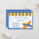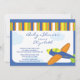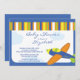 Comece o seu evento com o nosso Chá de fraldas de avião do bebê com um convite para bebê apresentando um plano cor de laranja, azul e amarelo. Nosso convite de avião giro é definido em um plano de fundo de nuvem com uma borda de distribuição azul, laranja, verde e branca.O convite para o Chá de fraldas Na moda e de tendências está disponível em outras combinações de cores em nosso compro em www.celebrateitinvites.com. Apenas personalize com suas informações e você está pronto para ir! Itens correspondentes, incluindo chás de fraldas postais, adesivos de favoritos, cartões de agradecimento e obrigado que você também está disponível em nosso compro. ©Blackleaf Designs