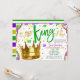 Convite para Chá de fraldas da Garota Mardi Gras - Um pequeno Rei está a caminho! Excelente convidada para usar para o tema Mardi Gras chás de fraldas de Garotas, aspersores de bebês, chás de casais e muito mais!