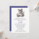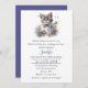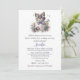 Adorável convite de chá para o bebê, com belos gráficos de um gatinho doce vestindo uma gravata de arco, com flores ao seu redor, contra um fundo branco. Personalize o texto personalizado para o seu próximo evento.