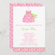 Um vestido adorável com uma impressão de girafa rosa num cabide. Faz um doce chá de fraldas convidar.
