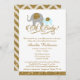 Adorável convite de chá, perfeito para um bebê ou gêmeos ou surpresa! A brilha adorinha este rico elegante, mas os elefantes o mantêm esquisito e bonito. Dourado brilho, cobertura de diafragma, mamãe e elefante para bebês.