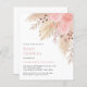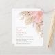 Este convite para chá de fraldas de uma floral moça é decorado com grama de pampas de aquarela, uma folha de palma seca, e rosas rosa-pinceladas. Facilmente personalizável para a celebração do seu chá de fraldas. Use a Ferramenta Design para alterar o tamanho, o estilo ou a cor do texto. À medida que criamos a nossa trabalho de arte, não encontraremos esta imagem exata de outros designers. Original Watercolor © Michele Davies.