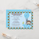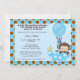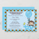 O chá de fraldas de macaco adorável em tons azuis e bolinhas castanhas, perfeito para um RAPAZ...macaco bebê com um passarinho num guarda-chuva