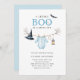 Chá de fraldas de Halloween Convite Bonito Este charmoso convite para o chá de fraldas de Halloween é a forma perfeita de dar boas vindas a um bebê durante a aconchegante temporada de outono. Apresentando delicada trabalho de arte de aquarela de um chapéu de bruxa, morcego, e um tecido azul bebê pendurado em galhos nuos do outono, ele adiciona apenas o toque certo de cutensidade assustadora. A manchete lúdica "A Little BOO Is Quase due", aliada a tons neutros sutis e a elementos sutis do Dia das Bruxas, faz com que este convite seja ideal para chás temáticos de gênero com uma reviravolta mágica. Claro que impressiona os seus convidados e dá o tom para um chá de fraldas inesquecível!