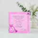 O convite para o chá de uma menina casal bonita feito de rosa. Gráficos de adoráveis joias cor-de-rosa, borboletas e uma espiral de flores, decoram este convite quadrado. O texto personalizado em preto e rosa está pronto para personalizar o evento especial. Adorável convite que o casal apreciará com todas as memórias do seu novo bebê.
