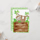 Design de chá de fraldas de preguiça adorável com a mais doce preguiça bebê pendurada num galho com folhas verdes para um chá de fraldas para meninas, chá de fraldas neutro, rapazes chás de fraldas com uma folha verde para trás. Visite nosso compro para ver nossa coleção de preguiças doces.