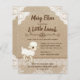 Burlap (burlap) castanho/bege neutro do ponto de vista do gênero e esquema de cores do local. A ilustração de ovelhas bebê pintadas à mão é perfeita para o seu chá de fraldas temático de cordeiro. Este pequeno convite de chá de fraldas de borrego de orçamento é personalizável e permite adicionar seu próprio texto e detalhes.