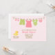 Este Chá de fraldas bonito apresenta um pato de borracha fofo e roupas cor-de-rosa e verde para bebês, meias e bib em uma linha de roupas de lavanderia. Este chá moderno e elegante é perfeito para qualquer mãe ser.