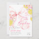 Celebre a alegre chegada de uma garotinha com nosso convite para chá de fraldas "Ciao Bambina". Esta carta encantadora apresenta flores aquáticas delicadas e cor-de-rosa macio e pastel e cordas de limão, e um arco ilustrado de forma elegante.