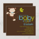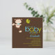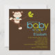 Comece seu chá de fraldas de safari com nosso convite para chás de fraldas de macacos da selva. Nosso convite ao chá de macacos apresenta o macaco mais doce com uma gravata arco balançando em um galho de árvore, sobre um fundo marrom e tenso com um macaco se coordenando. Visite nosso compro para ver nossos cartões de nota de agradecimento, cartazes e autocolantes. ©Petit Tatti