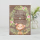 Adorável convite do chá de fraldas Safari rústico com macaco bebê mais doce para um chá de fraldas feminino com faixa de cor-de-água rosa para trás. Visite o nosso compro para ver este convite para uma ou mais meninas chás.