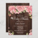Convite para chá de fraldas de madeira floral rosa
