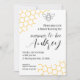 Convite para chá de fraldas "Mamãe-Bee". Esquema clássico de cor branca e negra com toques de amarelo de mel e uma abelha fofa.