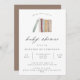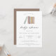 Um convite para chás de fraldas temático, moderno e neutro em termos de gênero, com uma ilustração aquática dos livros. "chá de fraldas" está na cinza da caligrafia moderna. Personalize com seus detalhes. Um design neutro de excelente para uma menina ou um bebê.
