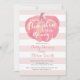 Convite Para Chá de fraldas De Menina De Abóbora. Convite para Chás de fraldas. Listras brancas e rosa. Para mais personalização, clique no botão "Personalizar" e use nossa ferramenta de design para modificar este modelo.