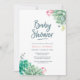 Convide seus amigos e família para comemorar seu chá de fraldas com este simples, mas elegante e elegante convite para Chá de fraldas de garota com lindíssimos florais de aquarela e texto escrito à mão rosa. A cor rosa vai avisar a todos que você está esperando uma garotinha! A coordenação de itens cor-de-água rosa também está disponível para um bebê.