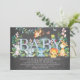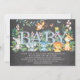Animais Watercolor safari chá de fraldas convite para um bebê colocado em fundo de quadro com um damasco azul coordenador para um toque especial.