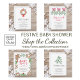 Planejar um chá de fraldas de Natal / Feriado? Este simples convite moderno é decorado com uma coroa aquática festiva de biscoitos de pão de gengibre, colly, folhagem de pinheiro, e um arco vermelho. Diz "O nosso biscoito está a caminho" na tipografia da na moda. Facilmente personalizável. Original Watercolor © Michele Davies.