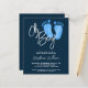 Você está planejando o chá de fraldas de um menino? Estes convites para bebês de orçamento moderno são decorados com Oh Boy! em tipografia de na moda e pés de bebê de aquarela fofo em azul pastel num fundo azul marinho. Facilmente personalizável. Original Watercolor © Michele Davies.
