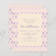 Os bonitinhos convites para bebês amigáveis ao orçamento apresentam um design púrpura cor-de-rosa e lavanda roxa ranhosa e uma tipografia estética vintage. Edite facilmente o texto para personalizar para o seu evento. Este design também está disponível em um papel de convite mais grosso.