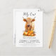 Bem-vindos aos convites perfeitos para um banho de bebê para uma festa do outono! Nosso convite "Santa Vaca, Estamos Tendo um Bebê!" apresenta um lindo bezerro de vaca em terras altas cercado por abóboras e folhagem de outono. As cores quentes e o design lúdico fazem dele a escolha ideal para a sua fazenda ou chá de fraldas do Halloween. Quer você esteja esperando um garoto ou uma garota, nosso convite à "Santa Vaca" é certamente para encantar seus convidados e dar o tom para um evento divertido e festivo. Então, por que esperar? Peça seus convites para chuveiros de bebês com temática animal de fazenda hoje e se prepare para celebrar a chegada de seu pequeno estilo! COPYRIGHT © 2023 Judy Burrows, Black Dog Art - Todos Os Direitos Reservados. Cartão-postal de Convite para Chá de fraldas de Outono do Terreno Superior
