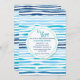 Um delicioso padrão horizontal de blues com branco com um decal de centro redondo que mantém os detalhes do seu partido. Perfeito para um chá de fraldas.<a href="http://www.freepik.com/free-vector/watercolor-abstract-summer-pattern-background_1196817.htm">Concebida por Freepik (). </a>() A placa é fácil de personalizar com o seu texto, fonte, cor da fonte, opções de forma de papel e escolha de seis tipos de papel.<br/>() Não exatamente o que você está procurando? Todos os nossos produtos podem ser personalizados para atender às suas necessidades sem custos adicionais.<br/>() Basta entrar em contato conosco em askcottonlamb@gmail.com.<br/>() Coordenando os produtos disponíveis: Apenas nos pergunte!