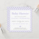 NewParkLane - Convite para Chás de fraldas bonito, com um padrão tradicional de gingham de lavanda pastel doce, e uma divertida tipografia moderna. Todos os estilos, cores e tamanhos de texto podem ser modificados para ajustado das suas necessidades. Veja esta coleção de itens correspondentes, como guardanapos de papel, pratos e muito mais. Você tem desejos pessoais específicos de design? Sinta-se livre para me contactar!