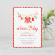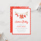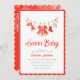 Papais noeis vermelhos festivos inspiraram um convite para chá de fraldas de uma garota de linha de tecido em uma cor vermelha rica para dar o tom para o seu evento.