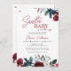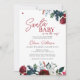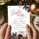 Papais noeis modernos de inverno Bebê sobre o jeito que se dava o modelo de convite de festas de Natal ou de chá de fraldas de menino apresentando lindas flores vermelhas florais e brancas com ramos de pinheiro e folhagem sazonal verde com um roteiro chic escrito à mão. +++++++++++++++ Fácil de personalizar com seus detalhes! +++++++++++++++++ O convite é adequado para festas de chás de fraldas elegantes de Natal, neutras em termos de gênero.