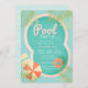 Este cartão de convite para chás de fraldas da "piscina" apresenta uma piscina azul-turquesa com um tubo interno vermelho de salmão, e um guarda-chuva vermelho de salmão e cadeiras de praia sob as folhas da palmeira sobre fundo azul-turquesa. O verso apresenta um fundo de banda azul azul-turquesa claro. Altere a cor de fundo tanto da frente como da parte traseira e personalize-a para suas necessidades. Você pode encontrar mais produtos correspondentes na minha loja.