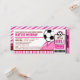 Celebre seu Chá de fraldas de Casais de futebol com nossa passagem de chá de fraldas de futebol rosa. Design apresenta uma bola de futebol em cor-de-rosa admite um estilo de passagem de entrada de estádio desportivo. Este design é perfeito para a festa do chá de fraldas de futebol, chá de fraldas da mãe de futebol, chá de casais de futebol ou convite para jogos de futebol.