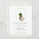 Bem-vindos ao seu pequeno patinho com este encantador convite para chá de fraldas do Pato Verde Mallard! Apresentando um clássico pato mallard color e tons verdes suaves, este convite é perfeito para comemorações de gênero neutro, rústico ou de temas antigos. Personalize com os detalhes do evento e defina o tom para uma reunião doce e eterno.
