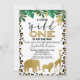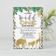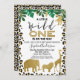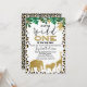 Animais fofinhos de safari de ouro e padrões de pele de leopardo, convite para chás de fraldas. Este design apresenta quatro bichos-da-folha-de-ouro falsos, algumas folhagem e um padrão de pele-leopardo. Esta é uma maneira fofa de convidar convidados para um chá de fraldas de temas selvagens.