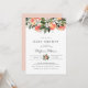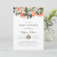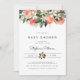 Este convite de chá de fraldas apresenta pêssegos de aquarela, florais brancos e uma fonte de script caprichoso. Edite facilmente todos os textos do seu chá de fraldas, chá de panela, chá de casais, etc.