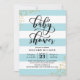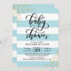 O convite para o chá de fraldas apresenta uma aspersão do falso confetti dourado e uma fonte moderna de caligrafia.