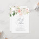 Este cartão de convite para chás de fraldas florais, cor-de-rosa e branco, é perfeito para uma celebração bonito de jardim ou chá de fraldas rosa. Este design mede 5 x 7 polegadas/12,7 x 17,8 cm e é perfeito para convites. Adicione um rsvp correspondente para completar sua aparência