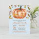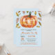 Convite Para Chá de fraldas De Abóbora. Convite para Chás de fraldas de outono. Convidado para Chá de fraldas. Azul, laranja e castanho. Para mais personalização, clique no botão "Personalizar" e use nossa ferramenta de design para modificar este modelo.