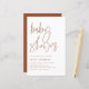 Convide convidados para o seu evento com este convite minimalista de chá de fraldas. Ele apresenta uma escrita manuscrita terracota minimalista com simples tipografia. Personalize adicionando nomes, data, hora, local e outros detalhes. Este convite para o chá de fraldas boho está disponível em outros estoques de cartonagem.