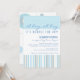 Um design contemporâneo para uma futura mãe. Coordenar padrões de listras e círculos sutis em azul pastel, chalé e creme faz um convite moderno para um chá de fraldas quando vai ser o dobro da alegria - gêmeos!
