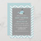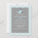 O Modern Invitation apresenta uma baleia de bigode azul em um fundo de cóvron azul e cinza.