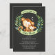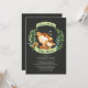 Seja bem-vindo. Convite para o Chá de fraldas de Um Macaco com uma mãe e um macaco bebê com selva verde deixa uma faixa de fita colocada sobre um fundo preto no quadro. Perfeito para um chá de fraldas de meninas, chá de meninos ou chá neutro em gênero.