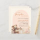 Um elegante Pumpkin está a caminho do convite Chá de fraldas. Um fundo creme, cor bege e um arco colorido de pêssego. Decorado com flores silvestres de cor aquosa em bege, rosa e uma abóbora de cor creme e um ursinho feliz. 1 folha = 1 convite impresso de borda a borda.