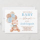 Convite para Urso de Teddy Bonito, perfeito para um tema de chá de fraldas de urso com cores azuis e marrons