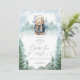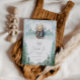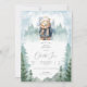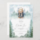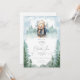 Esta bela design apresenta uma paisagem florestal de inverno com montanhas e um pequeno ursinho acolhedor. Este design tem um lado branco simples. Verifique as opções de cor verde ou azul na coleção.