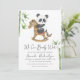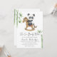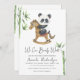 Podemos esperar chá de fraldas convite. Urso panda, de cor aquática, bonito, no cavalo de brinquedo e no bambu. Itens correspondentes disponíveis.