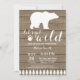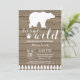Convite para Chá de fraldas de Urso Polar Russo. Convite para Chá de fraldas de inverno. Convite para Chás de fraldas de Menino ou Menina. O vamos fica selvagem. Convite para Chá de fraldas de férias de inverno. Fundo Rustic Wood. Campo de Vintage Retro Barn Para mais personalização, clique no botão "Personalizar" e use nossa ferramenta de design para modificar este modelo.