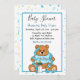 O convite de chá de fraldas do garoto do urso azul e amarelo bonito que você pode personalizar.
