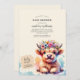 Uma adorável vaca de terras altas com coroa floral está sentada no fundo deste chá de fraldas de vaca sagrado. O estilo de aquarela bonito e o texto do script em um plano de fundo creme está certo. Chamem a caixa com o Santo Chamado Um Bebê Doce está a caminho! Veja a coordenação de itens no nosso compro, Encantado Finch.