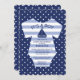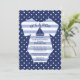 Náutica moderna de veleiro é um convite para chá de fraldas de menino que apresenta um conjunto para bebês azul e branco com um veleiro azul marinho escuro colocado em um fundo de bolinhas azul e branco. Sacudir nosso convite para o barco de verão para encontrar uma resposta para um toque especial extra.