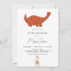 O convite ao chá de fraldas do dinossauro é feito num estilo minimalista, com um dinossauro fofo e um padrão atrás. Você pode personalizar este convite com seus próprios detalhes na seção "Personalizar este modelo".